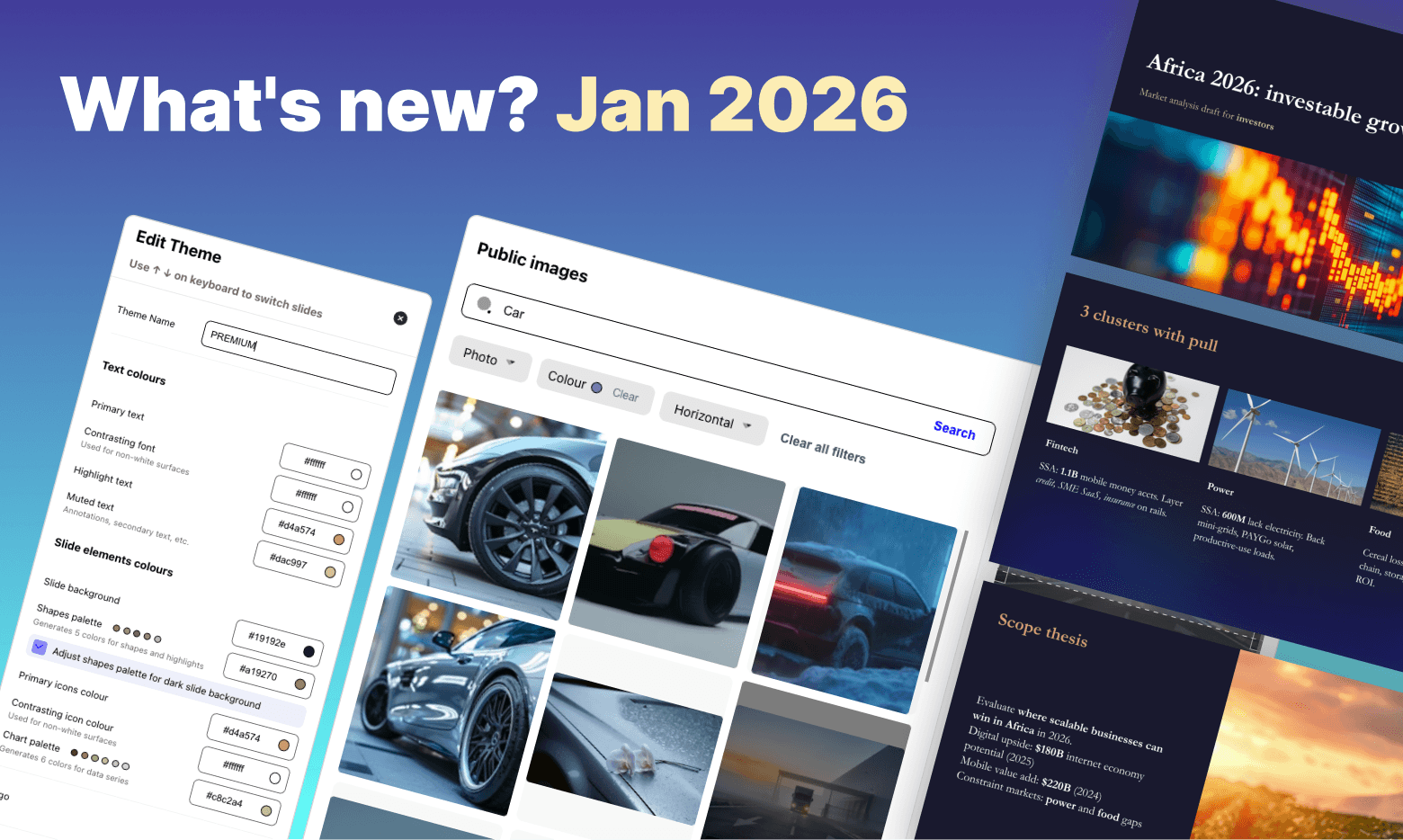Theme builder, Image editor 2.0, Auto-formatting & Teams plan