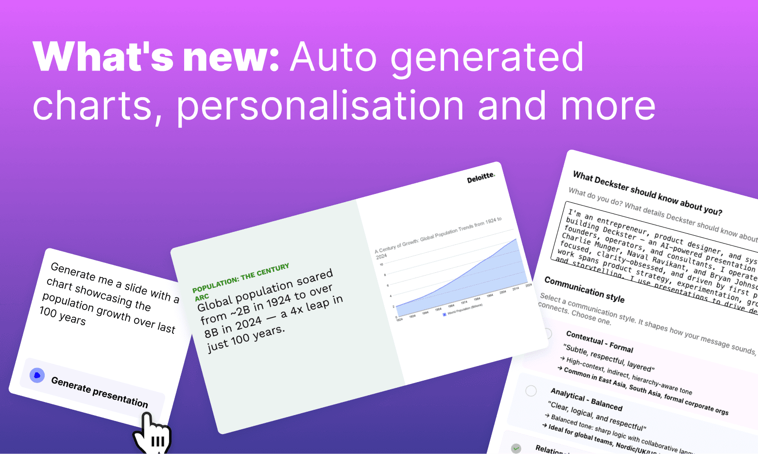 Learn how to use Deckster - the AI presentation builder. This quickstart guide covers prompt creation, iteration, AI editing, and exporting to Google Slides or PowerPoint.